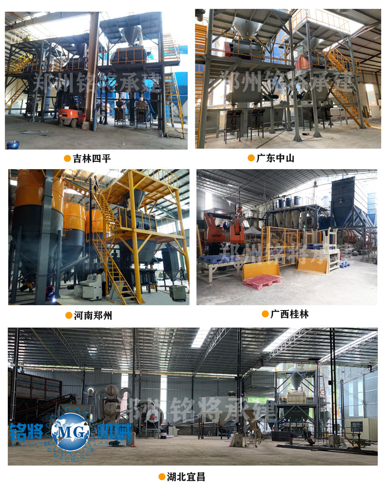該生產(chǎn)線可在傳統(tǒng)常規(guī)配置的基礎(chǔ)上增加添加劑自動(dòng)配料系統(tǒng),玻珠及添加劑氣力輸送系統(tǒng),以及成品砂漿自動(dòng)包裝輸送碼垛系統(tǒng)。