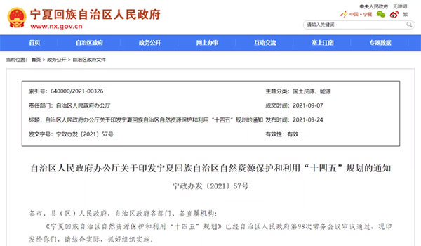 日前,寧夏人民政府辦公廳印發《寧夏回族自治區自然資源保護和利用“十四五”規劃》,明確提出,“十四五”期間全區礦產大中型礦山比例將提高到90%,統籌建設砂石集中開采區,生產礦山全部達到“綠色礦山”建設標準。