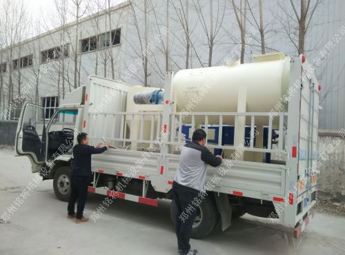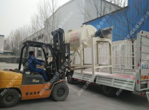 2016年03月13日,鄭州銘將機械設備有限公司新產品——改進型簡易干粉砂漿設備生產線裝貨完畢,如期發往西安。新產品帶單機的基礎上增加機械放料裝置,有閥口出料和敞口出料兩種,提高了生產效率。